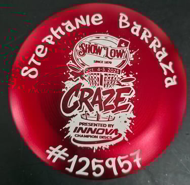 At Metal Disc Golf Minis, we bring your designs to life on premium, tournament-ready minis. Durable, stylish, and laser-engraved with precision, our stock minis weigh 50 grams and are available in 9 bold colors. Perfect for players, clubs, and events.
